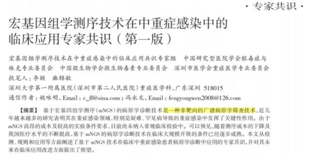 病原微生物宏基因組檢測(mNGS)專家共識與相關指南集錦